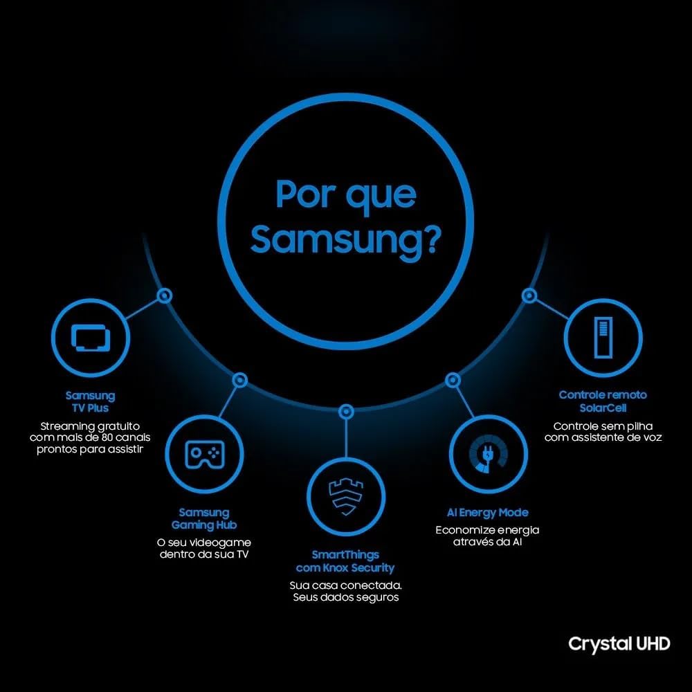 Prepare-se para uma experiência visual com a Smart TV Samsung UN50U8600FGXZD U8600F de 50". Com resolução UHD 4K (3840x2160) e display Crystal UHD, cada imagem ganha vida com cores vibrantes e detalhes incríveis. O processador Crystal 4K otimiza o conteúdo, proporcionando clareza e realismo impressionantes. A taxa de atualização de 60Hz garante transições suaves e sem borrões, perfeita para filmes de ação, esportes e games. Desfrute de conectividade completa com 3 portas HDMI e 1 USB, facilitando a conexão de seus dispositivos favoritos. O sistema operacional Tizen, leve e intuitivo, oferece 7 anos de atualização. Controle sua TV por voz com as assistentes virtuais Bixby e Alexa integradas, tornando sua interação ainda mais prática.